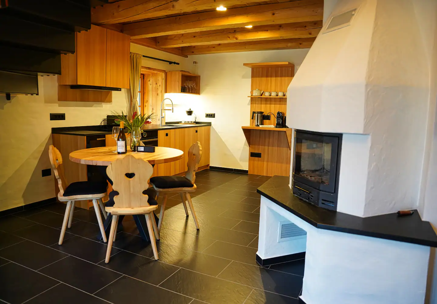 Apartma North je idiličen kotiček odmaknjen od turističnega vrveža, obdan z naravo in s čudovitim razgledom na Karavanke. Vhod v apartma je preko zasebne terase na severni strani, ki vam zagotavlja zasebnost in mir ter omogoča  uporabo kadi na drva. Apartma je namenjen za bivanje dveh oseb in vključuje svežo posteljnino ter brisače. V popolnoma opremljeni kuhinji boste našli tudi Nespresso kavni aparat. V apartmaju sta na voljo televizija in kamin za večerno sprostitev.