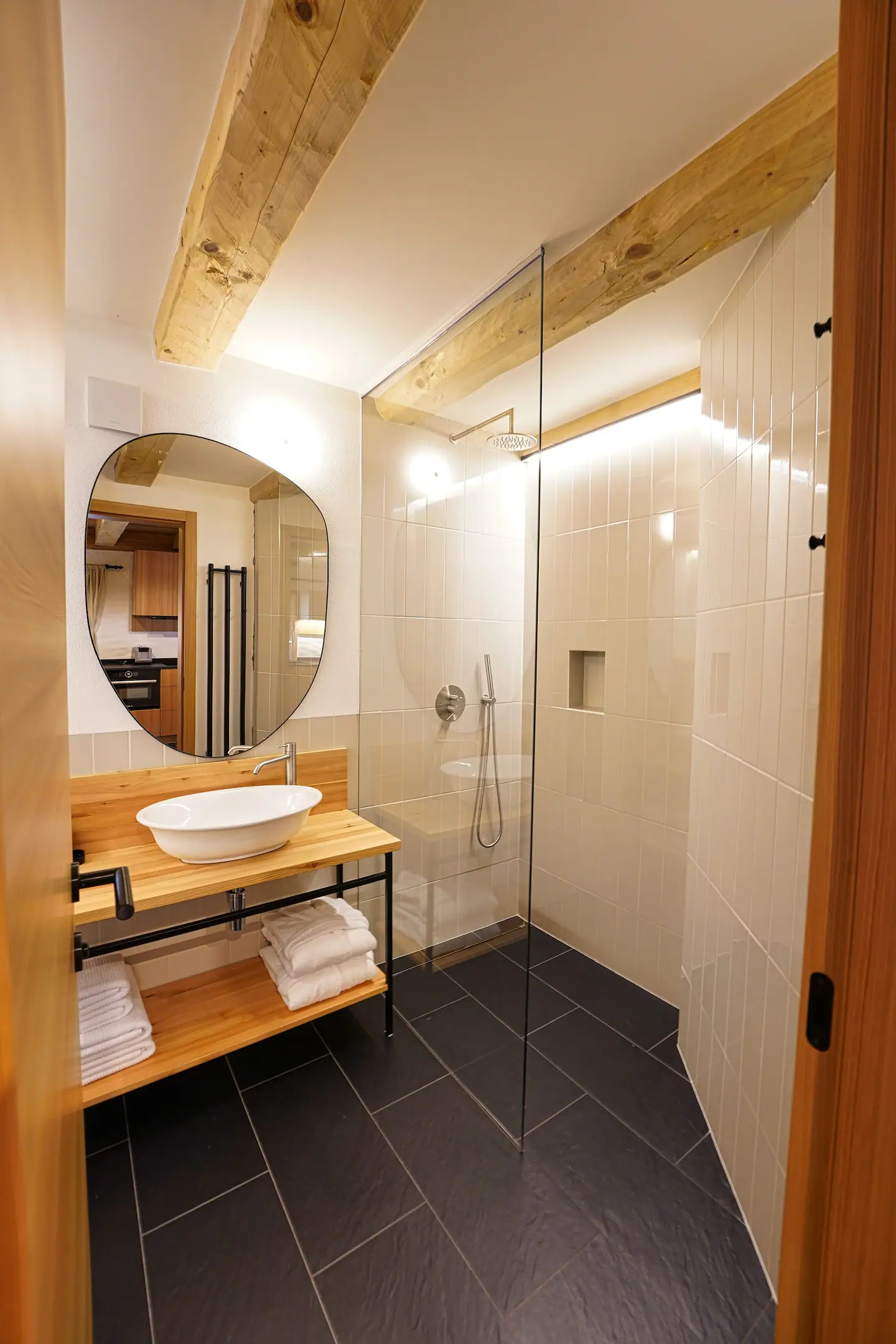 Apartma na južni strani ponuja osupljive razglede na Julijske alpe, poleg tega pa ponuja veliko mero zasebnosti.