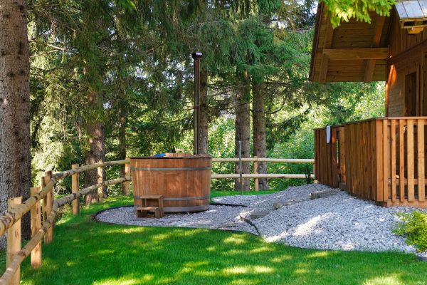 All apartments offer a private terrace, an outdoor wood-fired hot tub and a cosy indoor fireplace. They are also equipped with a modern kitchen, a modern bathroom and a spacious double bed with fresh linen and towels for total comfort.
